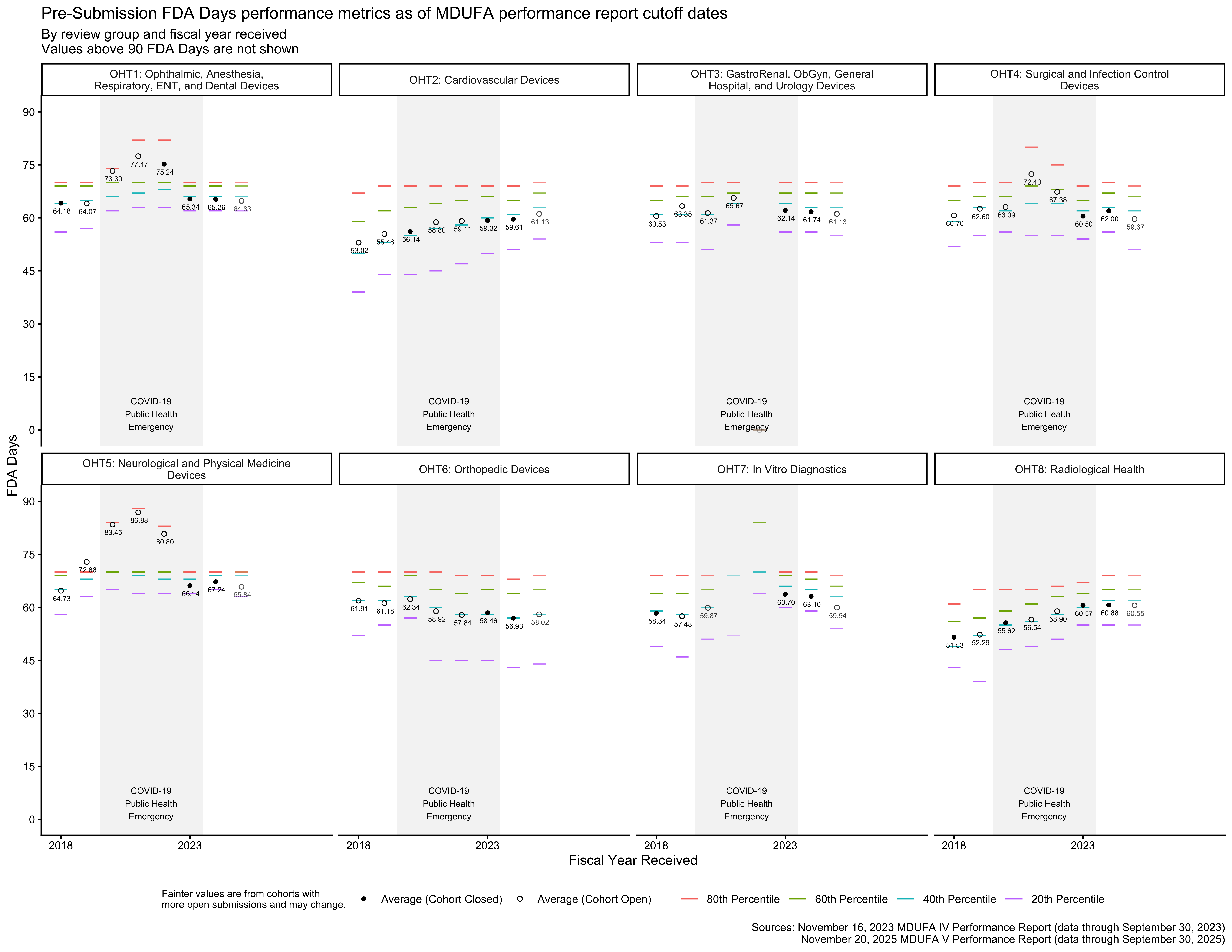 MDUFA 3 data is included for some review groups in the figures below and is not included for others. This is a result of reorganizations at the FDA. A major reorganization occurred on September 30, 2019, and a subsequent, smaller reorganization occurred later.